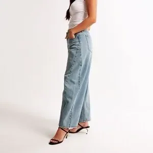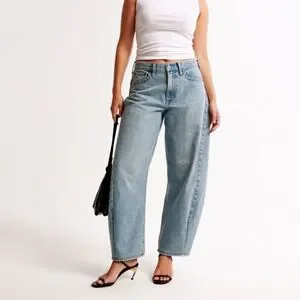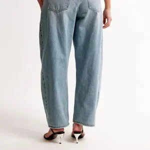 Our new Curve Love barrel jeans in a light wash with a clean hem. This fit features a 9.5” mid rise, is relaxed at the waist and hips and eases into a full-length barrel leg shape that tapers at the top of the shoe. The viral fit that eliminates waist gap: Curve Love features additional room through the hip and thigh for curve-hugging comfort. This jean is made from our heavyweight rigid denim, a super soft authentic cotton fabric with no stretch.