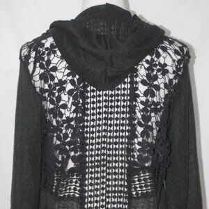 Cardigan Hoodie Duster Sheer Open Front Black Sweater haute monie Womens Large