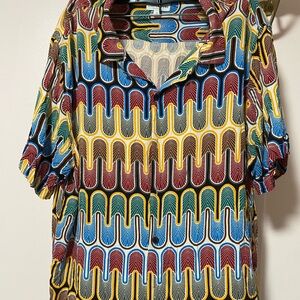 Vibrant and stylish women's top featuring a multicolor pattern. Perfect for adding a pop of color to your wardrobe.