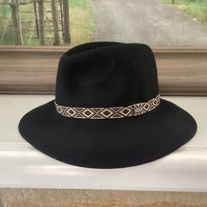 Lot Of 2 Wool Hats Fedora Western Black C&C Ribbon Mossy Green Leather One Size