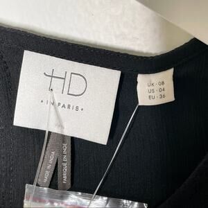 HD In Paris Ari Embellished Embroidered Boho Peasant Tunic Top Black Size 4