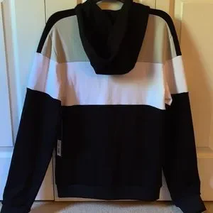 NWT, unisex, Karl Lagerfeld Hoodie, will fit a women size medium, this hoodie is so flippin’ soft. I wish you all could touch it. Colorblock, black, white & tan. Has the pockets in front. Zipper is like butter. Smoke/animal free home. All offers welcome & encouraged.
