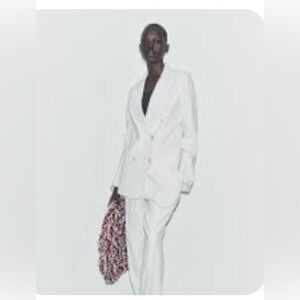ZARA WOMAN COLLECTION, Blazer made of linen blend fabric. Notched lapel collar and long sleeves with buttoned slits. Front pockets. Front double Perfect for formal occasions.