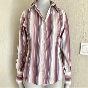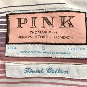 THOMAS PINK 100% Cotton Striped Button Up Shirt Plum White