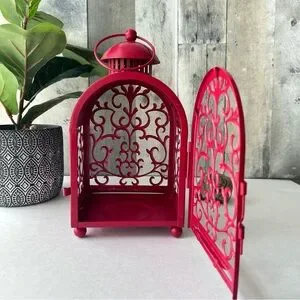 Add a touch of elegance to your home with this beautifully crafted red decorative Scroll lantern. Perfect for creating a warm ambiance indoor or outdoor. Christmas and Valentine's Day.