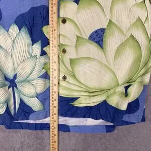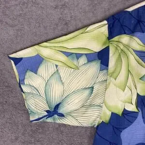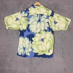 Tommy Bahama Hawaiian Shirt Men L Green Blue Floral 100% Silk Resort Vacation