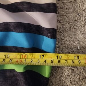 Classic Quiksilver energy with bold horizontal stripes in green, blue, and white on a charcoal gray woven base. Lightweight and perfect for beach days, skating, or just chill summer fits. Secure tie waist with velcro fly and back pocket for essentials.