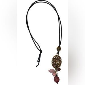 EIVIND HILLESTAD Marked EH Gold Plate Pendant Pink Bead Cord Necklace NORWAY