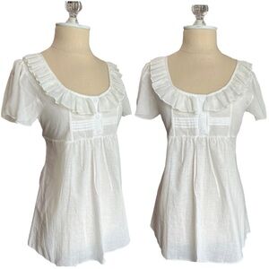 GirlTalk Ivory Ruffle Flutter Sleeve Bridgerton Vibe Babydoll Blouse Size Medium