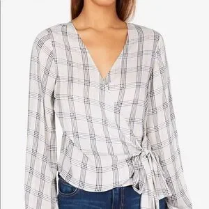 Wrap front lightweight plaid top perfect for fall and transitional weather 100% rayon