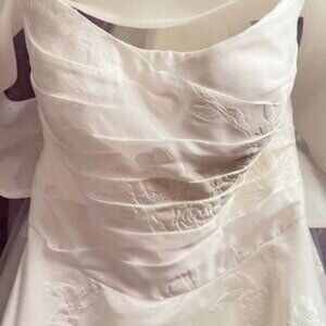 Cream Off-Shoulder Wedding Gown with detachable shawl bodice