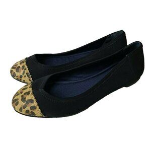 Jack Rogers Womens Ballet Flats Size 7.5M Black Leopard Print Slip On Shoes