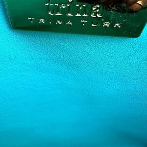 Trina Trina Turk Turquoise Scallop Reversible Tote -In excellent preowned condition -Turquoise/ Tiffany color -Reversible -PVC Measurements are approximate only (flat lay) -11”H x 12.5”L x 5.5”D Shoulder drop 9”. Savvy On A Budget 🌺