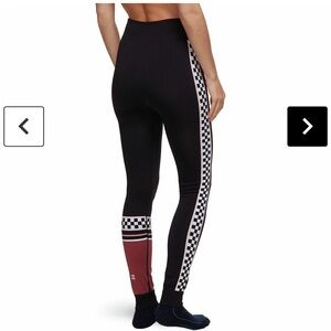 Ski baselayer leggings featuring a checkered stripe and red accent on the leg.
