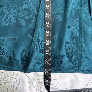 NWT Band of the Free Celene Side Drape Teal Floral Embossed Satin Midi Skirt Med