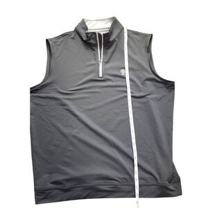Peter Millar 1/2 ZIp Vest Men's Large performance polyester Gray, club logo on chest crown logo on back neck. Good pre-owned condition no stains no holes measurements provided in pictures are approximate please check measurements for proper fit