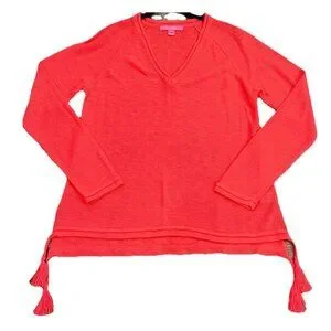 Lilly Pulitzer Women’s Jody V-neck Sweater Size Large Tassels Spicy Coral