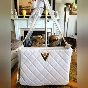 Elegant white mario Valentino quilted shoulder bag featuring a stylish gold chain. Perfect for any occasion.