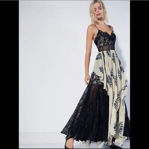 Free People Jill G's Limited Edition Dress in Size 2. Brand new with tags! No flaws. No signs of wear or use. This limited edition dress is truly stunning with a gorgeous layered look and eye-catching embellishments throughout. Features a racerback design with sequin lined straps. Lace accents add a femme feel to the neckline and a lace maxi silhouette hangs effortlessly underneath a flowy asymmetrical top layer. Sheer mesh panel at the waist. Side zipper closure. Partially lined. Dry Clean only. A prized piece of our heritage, each romantic and ethereal Limited Edition dress was dreamed up and created exclusively by a Free People designer. These dresses are special because of the personal inspirations and unique stories behind each and every one.