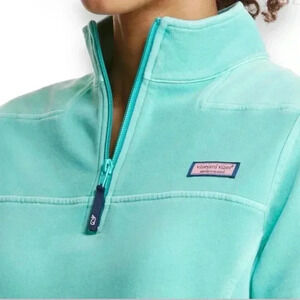 Vineyard Vines Women’s Shep Shirt Quarter Zip Long Sleeve Teal and Navy Top