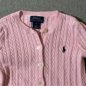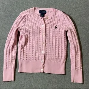Polo Ralph Lauren Cardigan Sweater Girls Size 6 Button Up Cable Knit Youth Pony