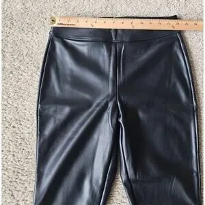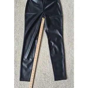 These SO leggings for women are high rise with a skinny leg design and feature pockets. Made of 100% polyester in a faux leather style, they are suitable for both casual and formal occasions. The color is black, and the material is breathable, making them ideal for winter, fall, and spring seasons. The waist size is 28 inches, and they come in a size medium.