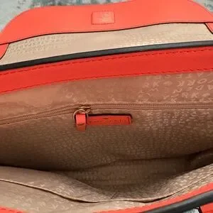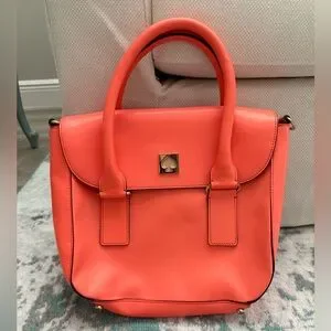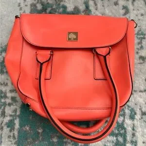 For sale is a USED coral colored Kate Spade purse with dustbag. It comes with a longer strap that can be used or stored in the dustbag when not in use.
