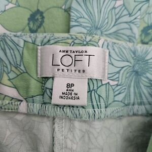 Ann Taylor LOFT Capri Pants Green Blue Floral Mid Rise Zip Cropped Petite 8P
