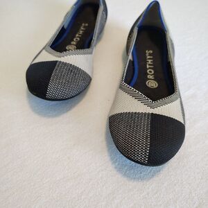Rothy's Buffalo Plaid Flats Round Toe Captoe Black Cream Shoes Womens 9 Slip On