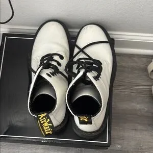Dr. Martens White and Black Lace Up Boots 8-Eye Design