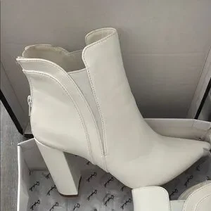 Elevate your style with these sleek Qupid heeled boots, crafted in a pristine white color. Featuring a contemporary design with a chunky heel, these boots offer a minimalist aesthetic perfect for any occasion. Made from a smooth leather-like material, they promise both comfort and modern elegance.
