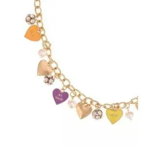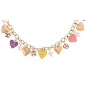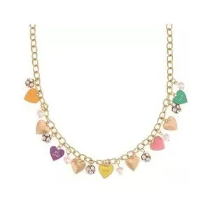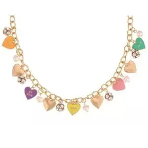 Gold Tone Heart Charm Necklace Crystal Faux Pearl Trendy Fashion Chic Style NWT