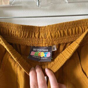 unisex sweat shorts from big bud press in size small. got them via sample sale, in spicy mustard. worn a couple times but ultimately too small for me.