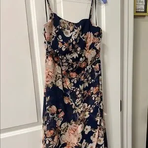 Elegant floral dress in navy with peach and cream accents. Perfect for any occasion. NWOT