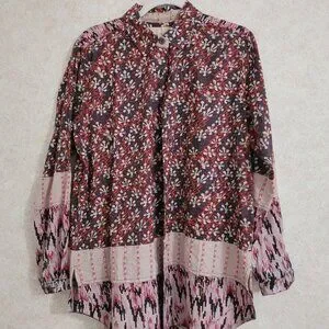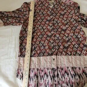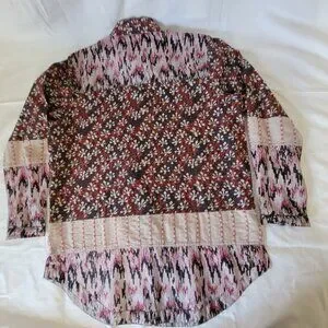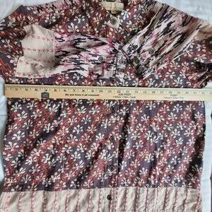 Patchwork BoHo Womens Pink Red Blue Territory Ahead Shirt Long Length Size M