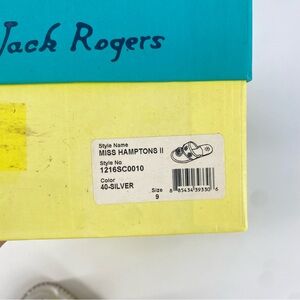 Jack Rogers Toddler Girls Miss Hamptons II Silver Sandals. Slip on. Signature whipstitch and rondelle detailing. 0.5" stacked heel.Leather upper, leather midsole, footbed and lining, rubber sole. Great pre owned condition. Size 9C.