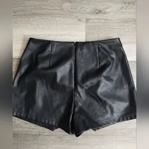 Elevate your style with these chic black faux leather shorts. Perfect for a night out or a casual day look.