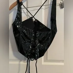 Allure Lingerie Leather PVC Latex Lace Up Top - L