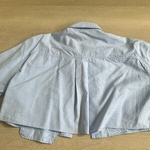 EUC Zara light blue cropped button-up with Asymmetrical style pockets.