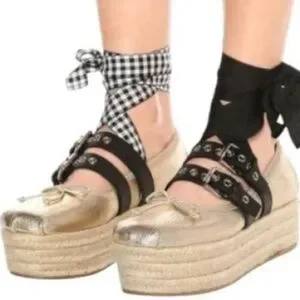 Miu Miu Gold ballet Platform Espadrille Shoes