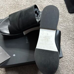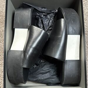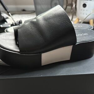 Chic black leather platform slides by Vic Matie. Ideal for a stylish and contemporary look.
