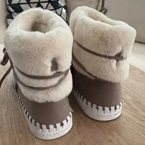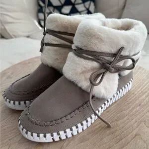 ILSE JACOBSEN Gray & Ivory Soft Shearling Foldover Tulip Boot Eur 38 US 7.5