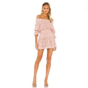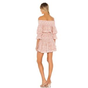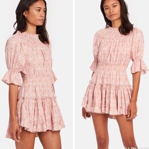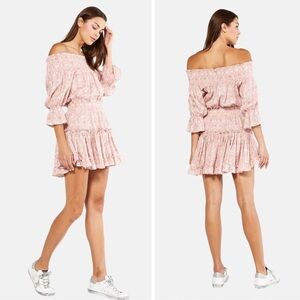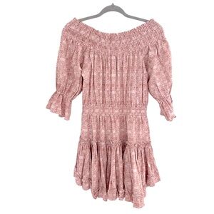 NWOT NEW MISA Off-Shoulder Mini Boho Cinched Cottagecore Sundress Sleeves S