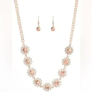 NEW Boutique Rose Gold & Silver Diamond Floral Necklace & Earrings Jewelry Set