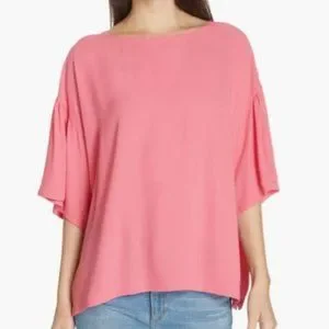Eileen Fisher Flutter Sleeve Silk Georgette Boxy Top Pink Size 2X