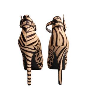 Heels High Platform Animal Pattern Leopard Zebra Genuine Cow Hair Sexy Shoes sz 8 in EXCELLENT like NEW Condition! Sexy sexy sexy! Ankle strap for stability and extra sexiness. See photos for details and measurements.