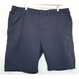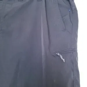Wrangler Outdoor Performance Zip Cargo Shorts; Color Black, Men's Size 44; Material - 100% Polyester; Care - Machine Wash Inside Out Wash Cold, Tumble Dry; Made in Bangladesh; Closure Button & Zipper; Belt Loops, 3 Zipp Pockets, 2 Slant Pockets,