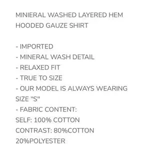 294 1 left ❤️ OLI & HALI MINIERAL WASHED LAYERED HEM HOODED GAUZE SHIRT