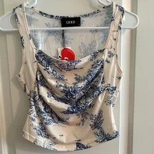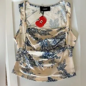 Brand New with Tags. Size Small. Elevate your style with this elegant Cider top. Featuring a beautiful blue pattern on a cream background, this top is perfect for any occasion. Enjoy the comfort and chic design that Cider is known for.