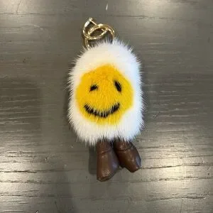 Egg Yolk Smiley Face Faux Fur Keychain